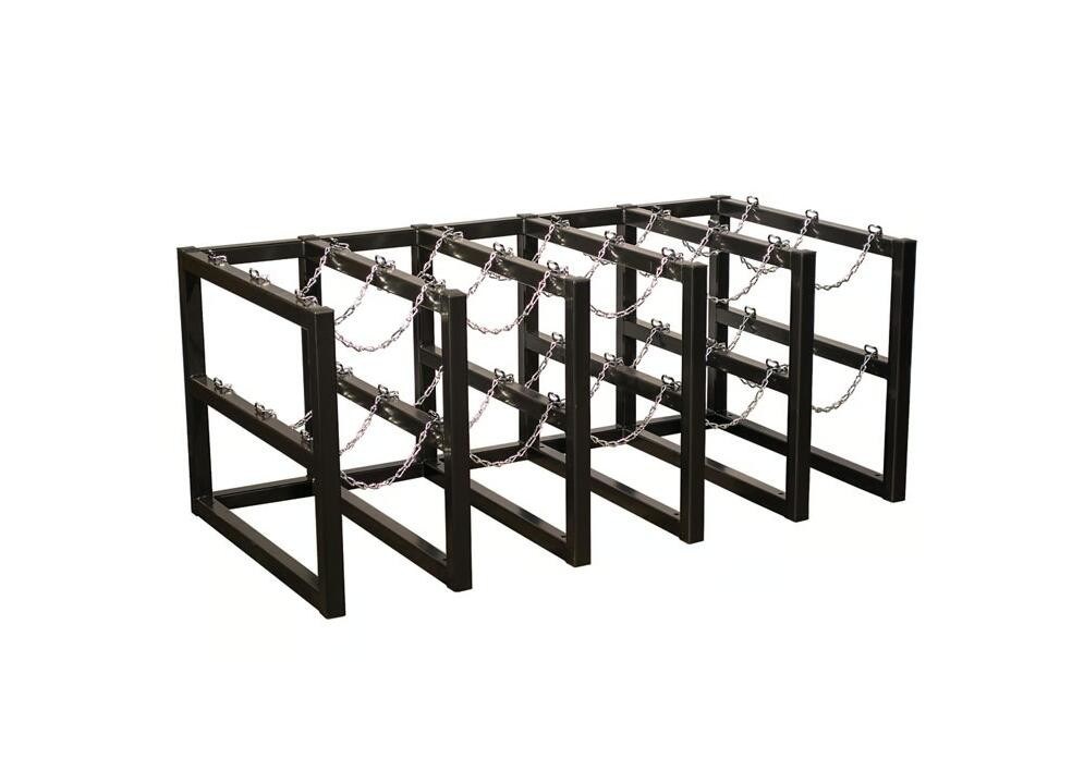 Stojaki na butle gazowe utrzymują butle gazowe w pozycji pionowej i zabezpieczają podczas przechowywania.Mają pionowe słupki, które podtrzymują cylindry i utrzymują je w porządku w rzędach.Mają także łańcuchy, które utrzymują butle bezpiecznie wewnątrz stojaków.Regały stoją na podłodze..
